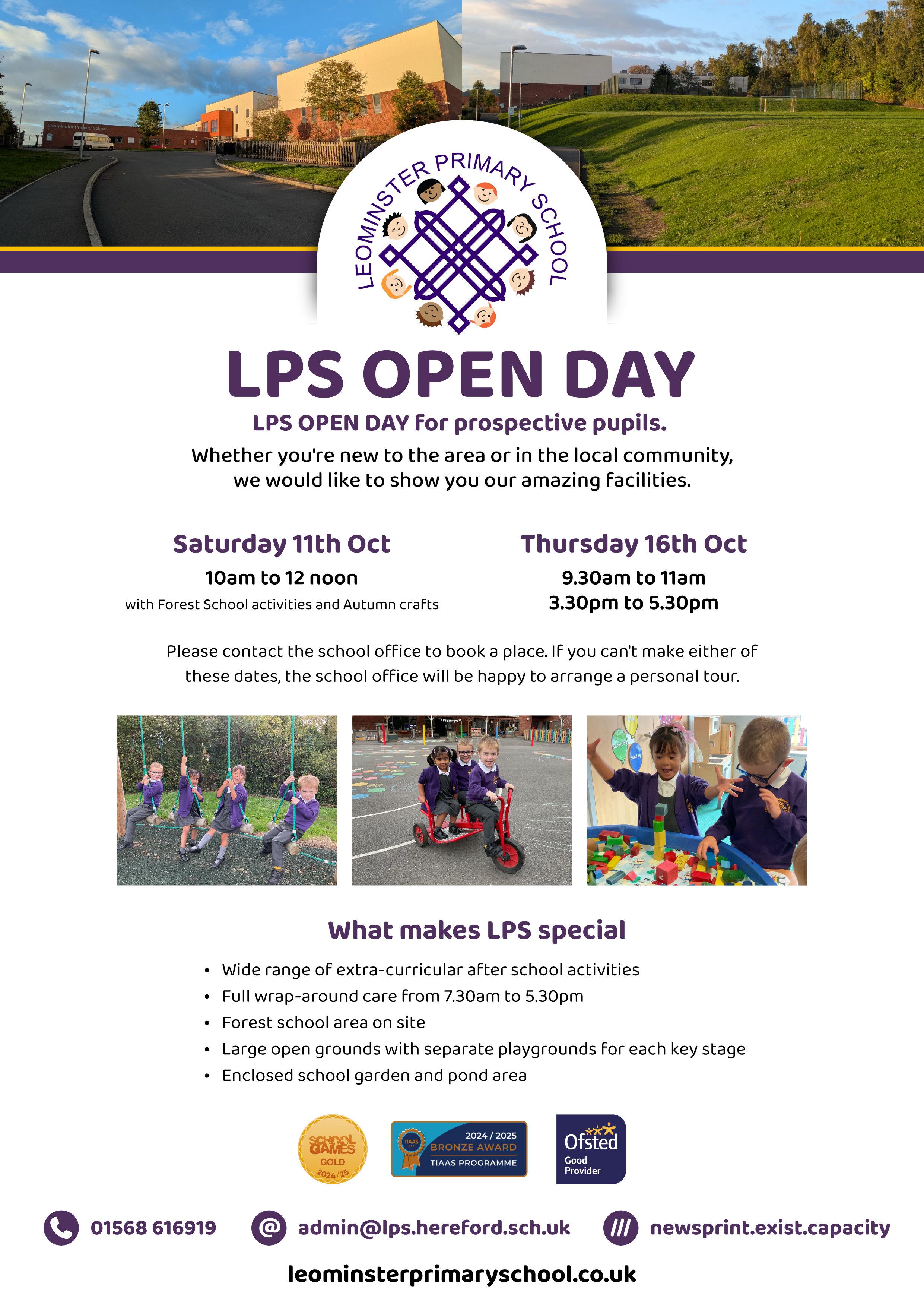 Thursday 16th October - LPS open day (9.30am-11.00am) and (3.30pm-5.30pm)